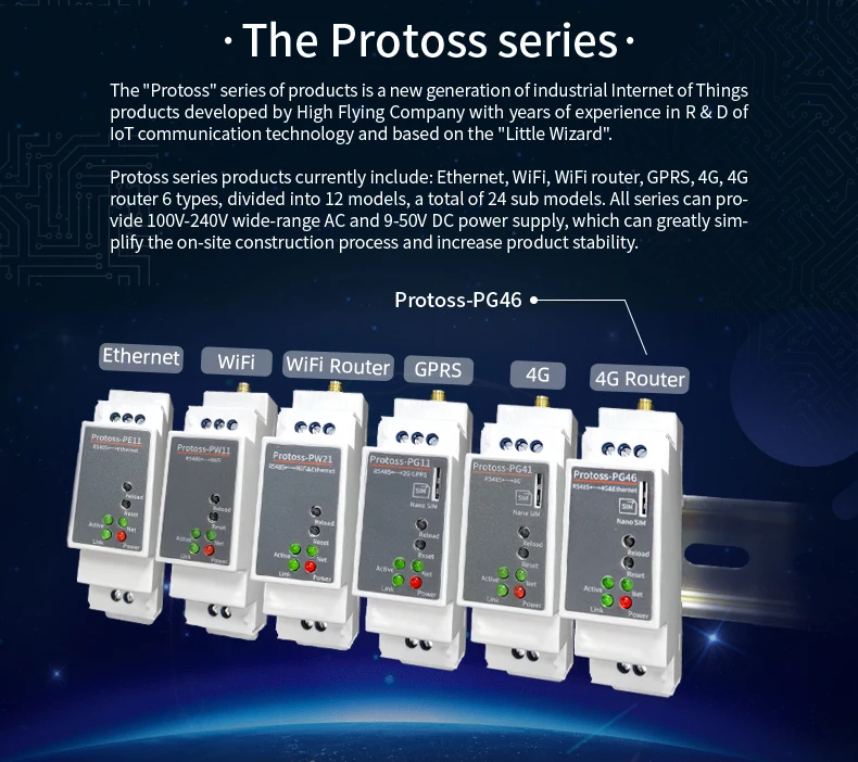 High Flying Protoss-PW11 RS485 Wired to Wifi Wireless Serial Server Rail Mounting DTU RS485 to WIFI Serial Server