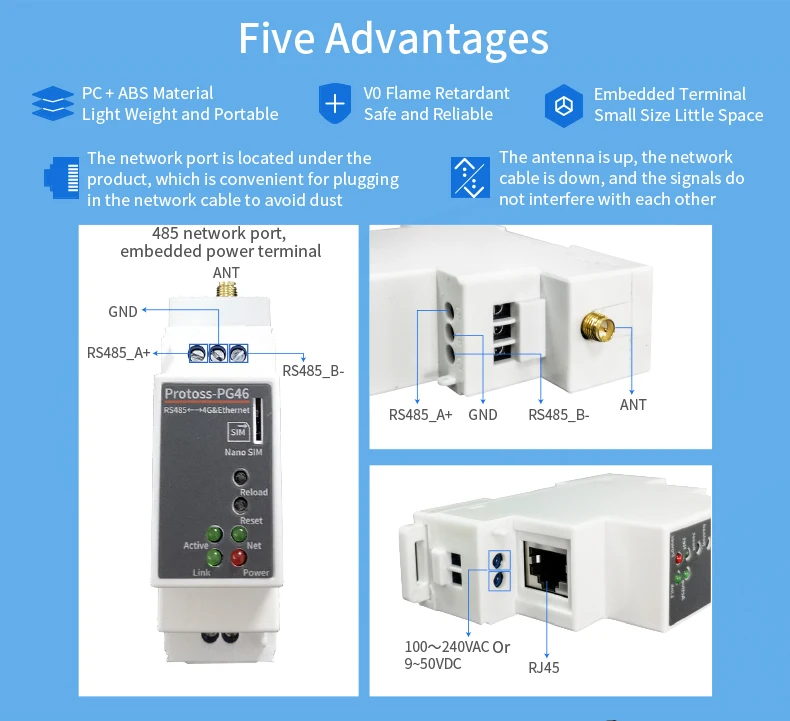 Power supply, acquisition, communication three terminal isolation, standard MODUUS RTU protocol. All input interfaces have overvoltage protection.